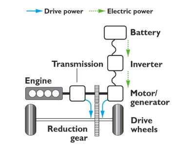 – It converts electric energy into mechanical energy to drive the hybrid vehicle