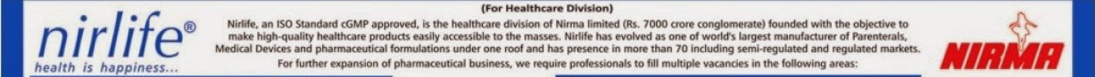 Mail your resume on Email : hr.healthcare@nirma.co.in